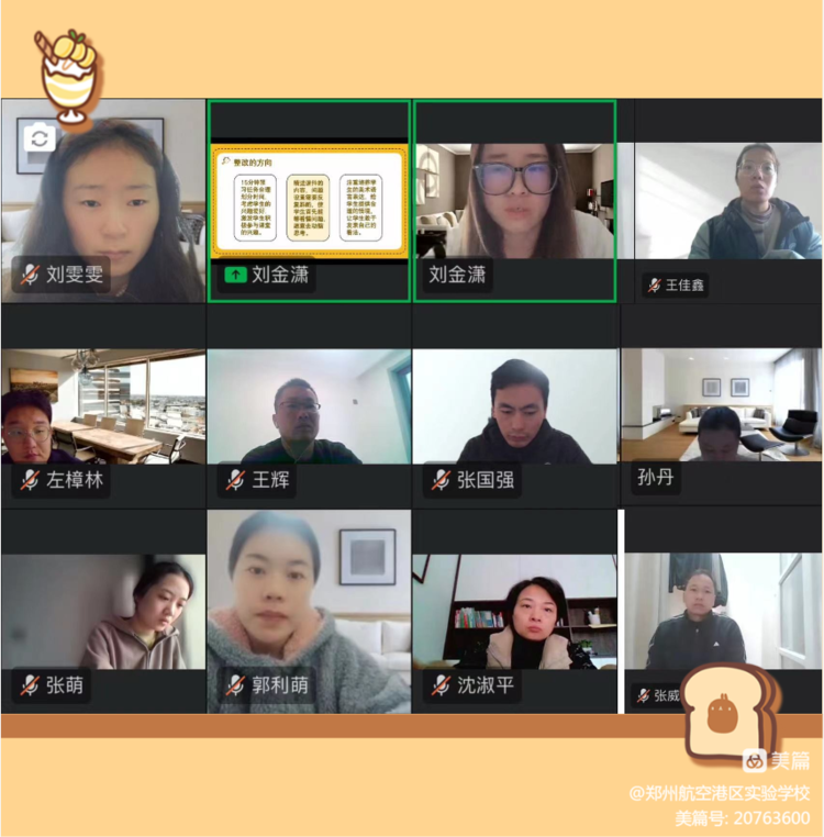 理化生组老师注重学生的心理疏导,提出了多样化方式,缓解学生疫情环境恐慌症,能够让学生安下心来进入学习状态。同时,各年级老师集思广益,依据学生作业参与度、与学生的聊天记录,进行过的素养展示以及保存的直播数据等,作为参考,制定复习计划。沈校长和孙主任提出具体建议,鼓励老师们多做中招题,了解中招习题;跳出专业限制,多站在学生的角度去思考,提质增效。理化生组老师,共克时艰,齐头并进,不断超越自我,未来可期。