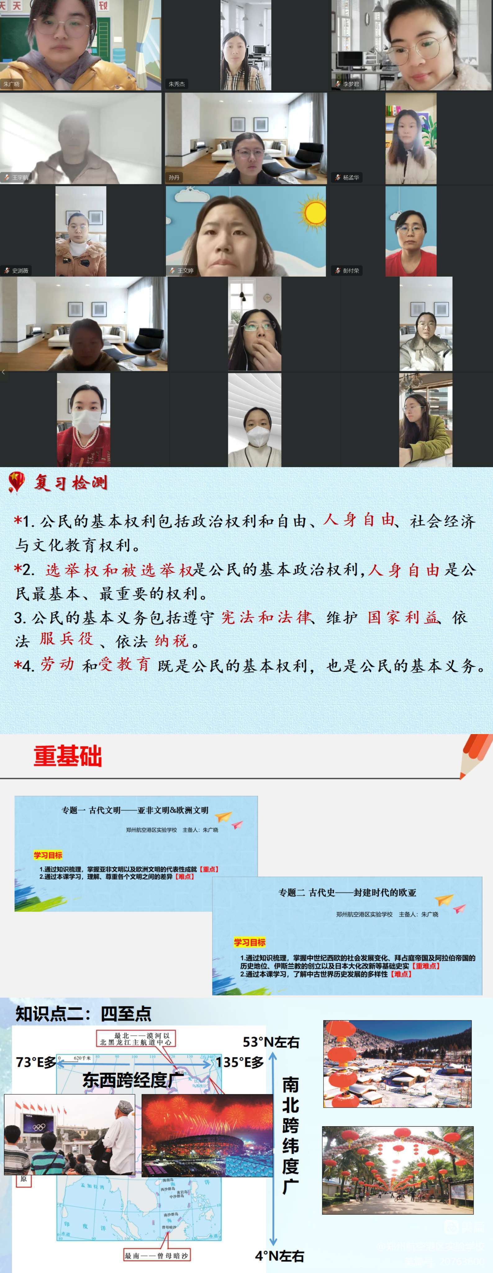 政史地组分享交流复习策略,“单元➕专题”模式,将知识进行有效整合,便于学生前后知识的联系和比较。 孙主任指出老师们要用心备好复习课件,不能只停留于“讲练结合”的形式,复习要做到直观明了,重难点突出,习题与知识点要对应,让学生学有所获。