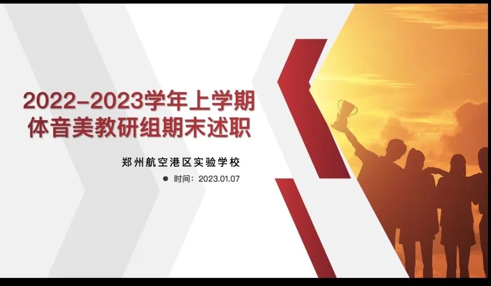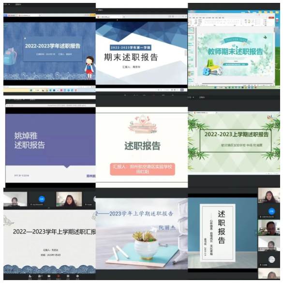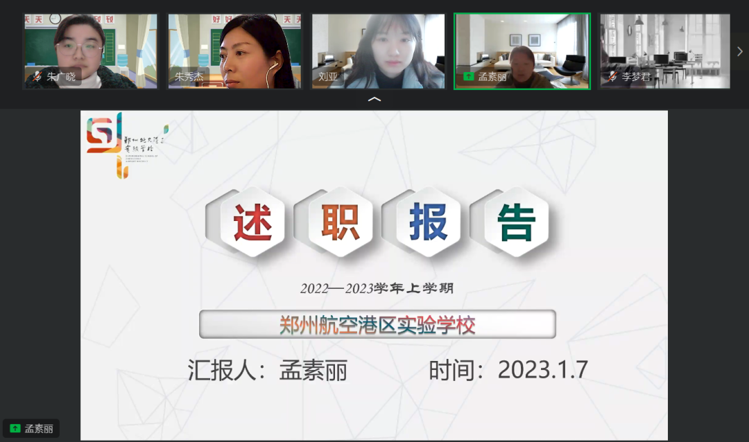 新年伊始,郑州航空港区实验学校为老师们搭建了一个展示、交流、成长的平台,各学科组相聚云端,进行学期末述职报告,在短短时间内,每位老师细细围绕一学期以来自己在教育教学、教研工作、家校沟通、学生活动等方面进行了述职。“述”说精彩,反思不足,“职”面未来,为下学期工作的顺利开展奠定了良好的基础。