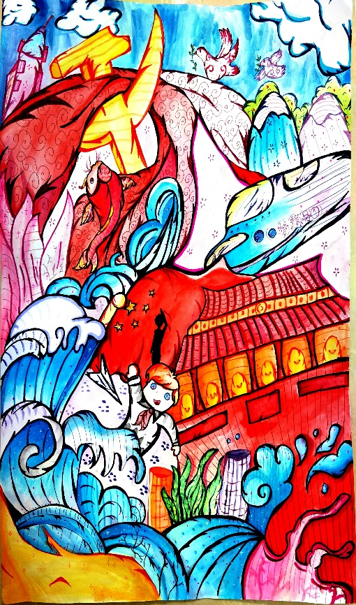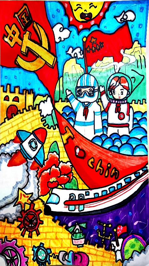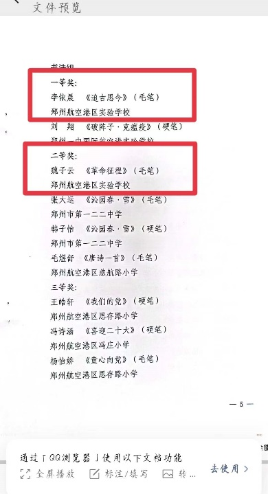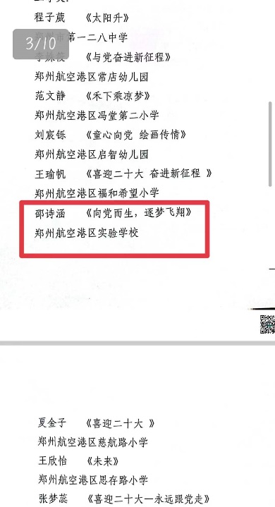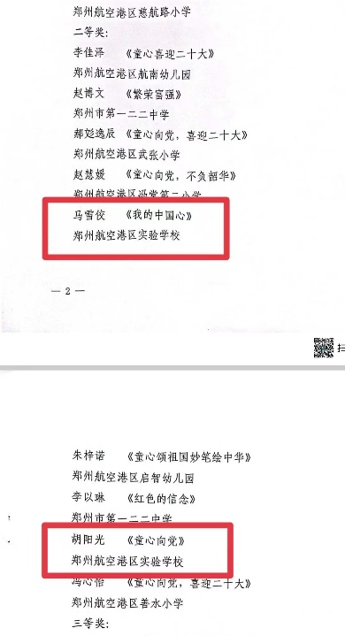 在郑州航空港经济综合实验区文明办组织的“童心向党 喜迎二十大”书画作品征集活动中,郑州航空港区实验学校五幅作品获奖并进行了展示。