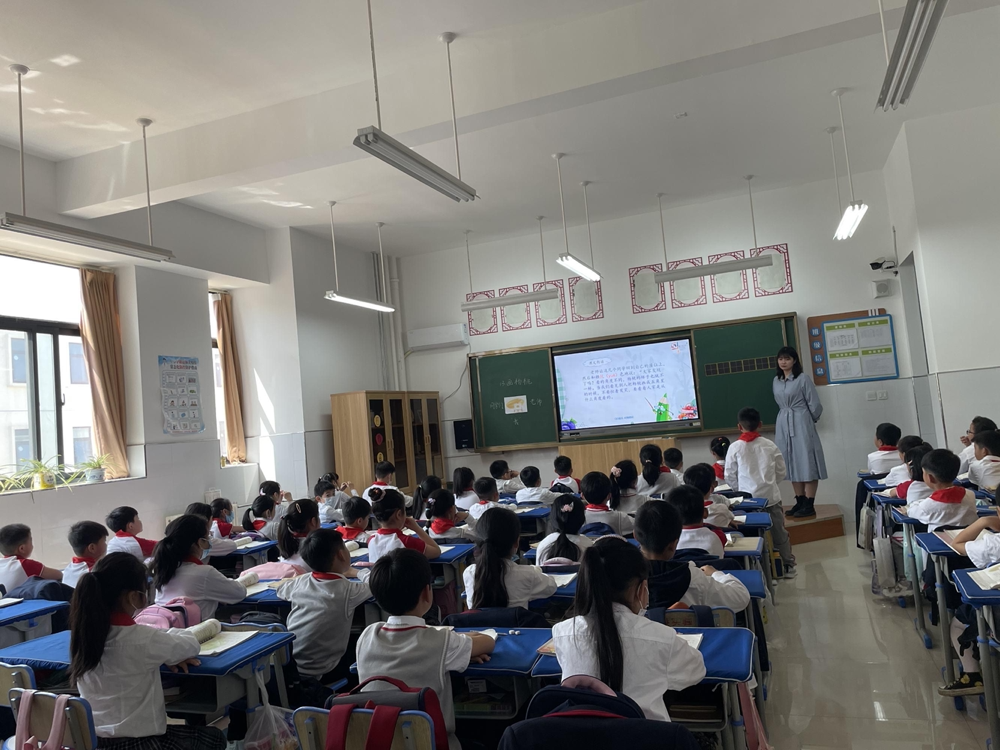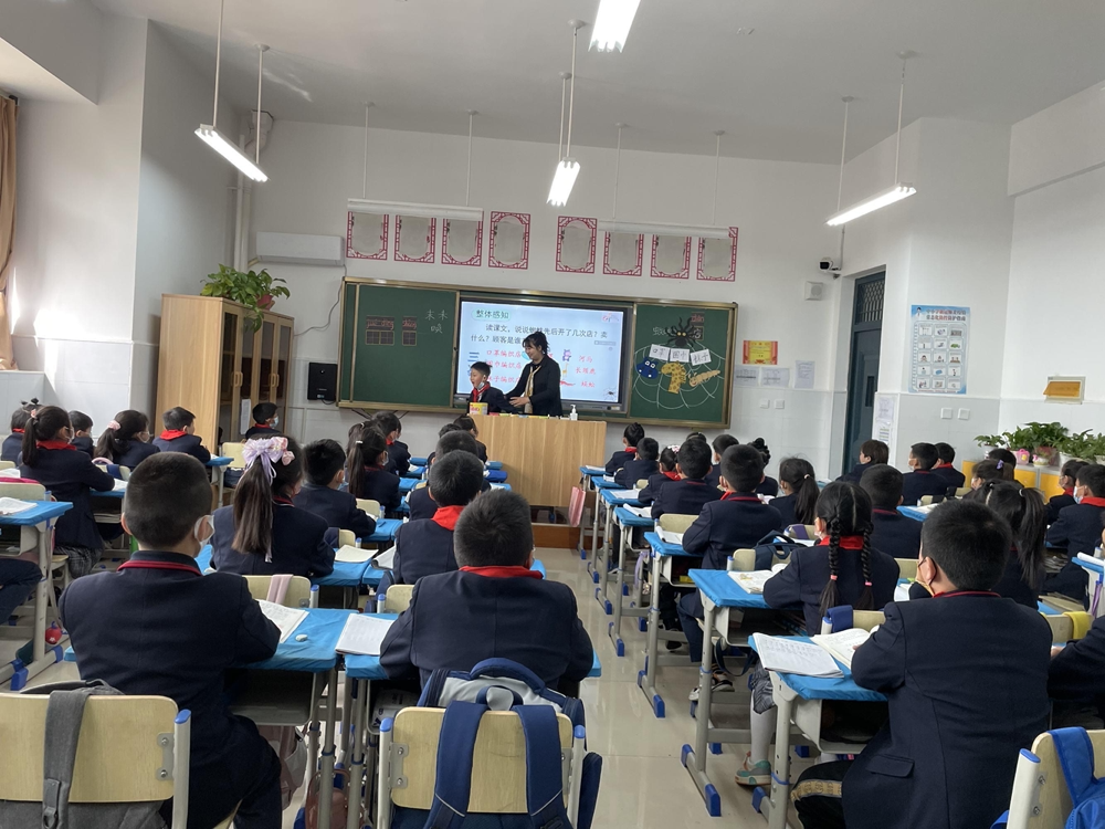 介老师执教了科学小品文《太空生活趣事多》,课程伊始,一段前不久在中国空间站开讲的天宫课堂瞬间抓住孩子们的眼球,引起学生对太空生活的兴趣。在识字环节,介老师采用同桌两人轮流分节读课文的方式让学生自查自学,并配合师领读、开小火车读等方式,扶放结合,大大提高了课堂教学效率。整个课堂环节流程,形式新颖,课堂气氛活跃,充分利用视频资源丰富学生对太空生活以及中国航天发展历程的了解,使学生在思想上得到启迪,情感上收到熏陶感染,弘扬民族自豪感。