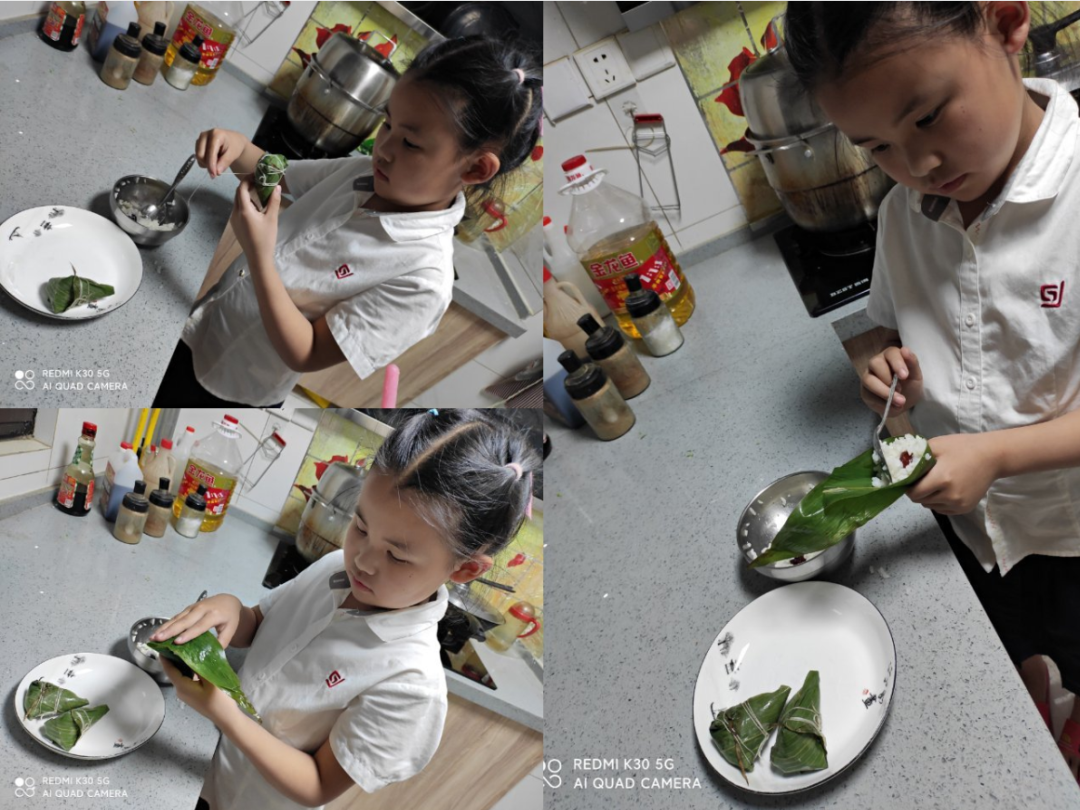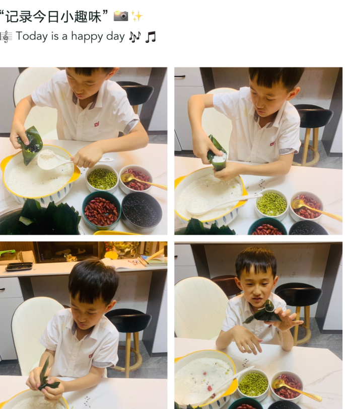 文化的传承不应该仅仅停留口头上,传承和发扬为重中之重。借此节日,我们号召孩子们积极行动起来,通过自己的方式去感悟源远流长的传统文化。这不,可爱的同学们包起粽子来还真是有模有样呢!