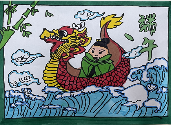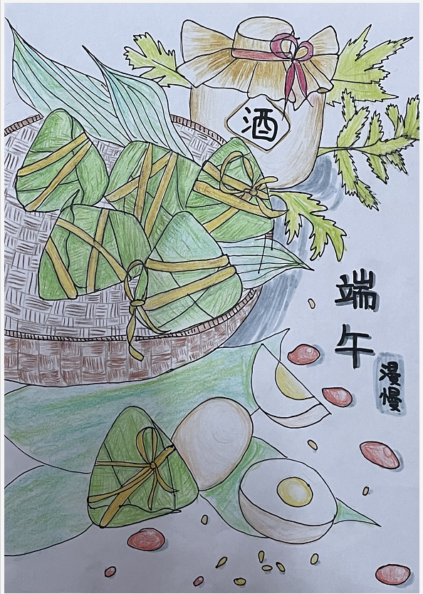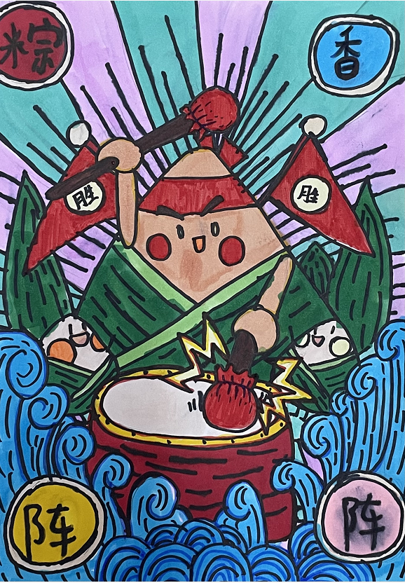 同学们通过阅读书籍和学习,对端午节有了更多的认识。挥动画笔,创意无限,创作了一幅幅可爱生动的端午佳作。