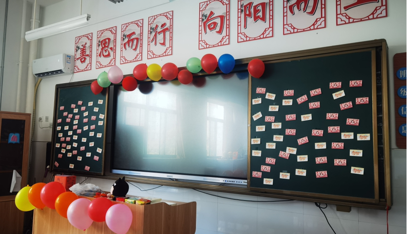 “神兽归笼”之前,班主任们各尽其能,各展其长。一行行端正的名字饱含深情,一份份精美的礼物充满祝福,一个个五彩的气球放飞欢乐。