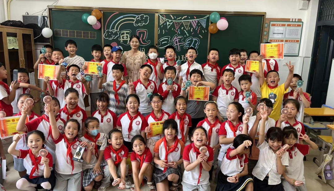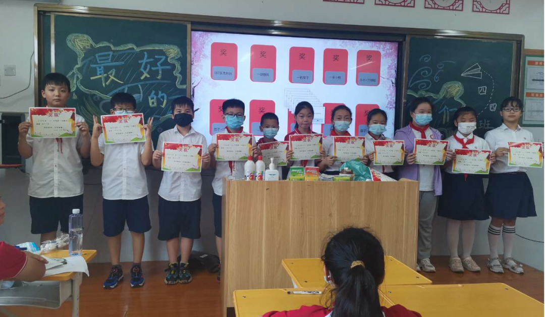散学典礼最激动人心的就是颁奖仪式,在师生热烈的掌声中,各班主任为本学期获得“三好学生”、“优秀班干部”、“优秀少先队员”、“进步之星”、“阅读之星”等奖项的学生进行表彰并颁发奖状。