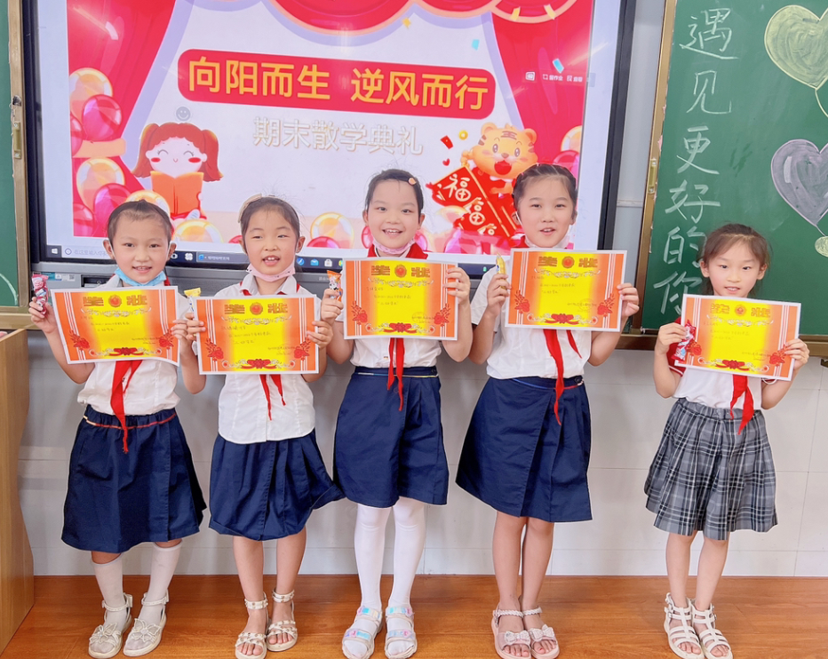 夏日蝉鸣,柔风轻拂时光踏下轻盈的足迹,卷起昔日的喧闹悠然长去,校园生活按下“暂停”键欢乐暑假正式开启!2022年6月22日我校各班级举行了简单而又隆重的学期散学典礼