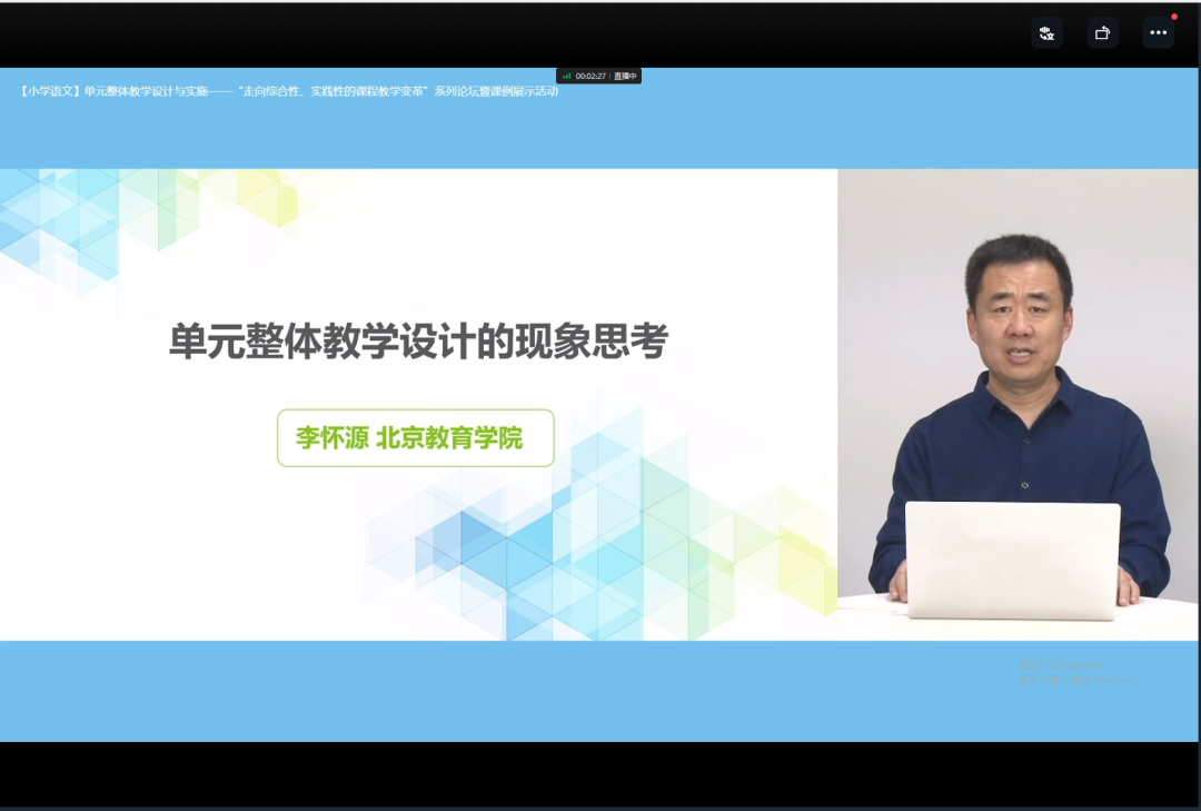 活动开始,李怀源老师从如何设计素养型教学目标、如何设计具体的学习任务、如何设计可见的学习成果这几个方面为切入点,向我们具体阐述了他对单元整体教学的思考。