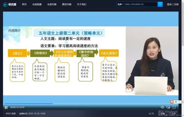 接着,李凡老师选择统编版三年级上册《预测故事的发展》单元整体教学设计,从设计理念、内容简介、学习目标、总体构想等方面进行了课例展示。庄安娜老师以“计时阅读大赛 争做校园广播员”为题,从设计理念、内容简介、学习目标、总体构想、具体的学习任务和可见的学习成果六个方面展开说课。